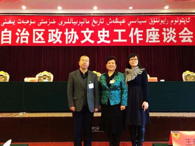 ???????? ?2014年3月11日,自治区政协文史工作座谈会在乌鲁木齐昆仑宾馆召开?;嵋橛勺灾吻泵厥槌ぐ⒉嫉?玛坚主持,会议的主要议程是:传达学习全国文史工作会议精神;讨论《自治区十一届政协文史工作规划》;交流工作经验。区委会专职副主委、自治区政协文史委员会委员尤江斌,区委会宣传部部长曹笑艳参加了会议。